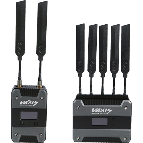 The Vaxis Storm 3000 Wireless TX/RX Kit is renowned for its ability to multicast to unlimited amount of receivers. Paired with a Storm 5G RF Channel Scanner, users can instantly see the number of usable camera pairings in the area. This kit includes a transmitter and a receiver, with the receiver featuring an integrated Gold mount plate.