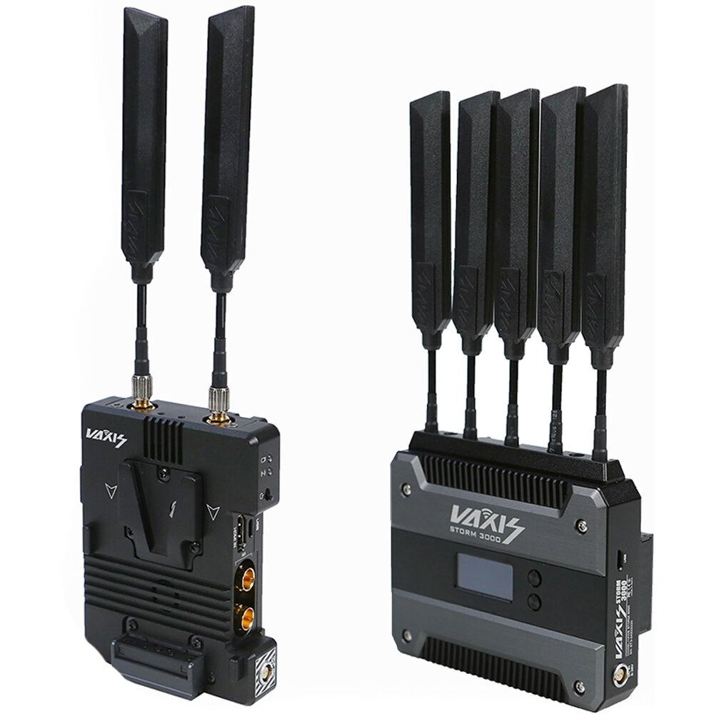 With the Storm 3000' DV Wireless Video Transmitter from Vaxis you can transmit visually lossless, uncompressed video signals to any Vaxis Storm receiver with zero latency. The unit features a dual V-mount plate which allows you to attach it to the V-mount plate on your camera and mount a V-mount battery on the other side, providing pass-through power to both the transmitter and the camera simultaneously. The transmitter features one HDMI input, one SDI input, and one SDI loop output, and it supports input up to 4K and up to 1080p60 video transmissions. The unit also supports cross conversion from HDMI input to SDI loop output.