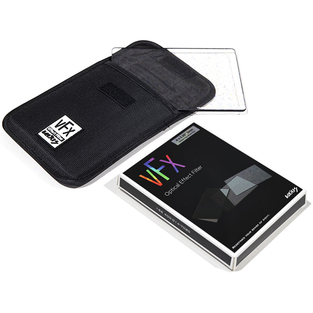 The VFX 4 x 5.65" Blue Streak Filter from Vaxis installs into compatible matte boxes and creates elongated blue-colored streaks that are symmetric and extend horizontally from point light sources within a scene. It can draw attention to a specific part of the frame or create a visually dramatic effect. The filter is constructed from water-white glass for optical clarity and color fidelity. A padded pouch is included for storage and transport.