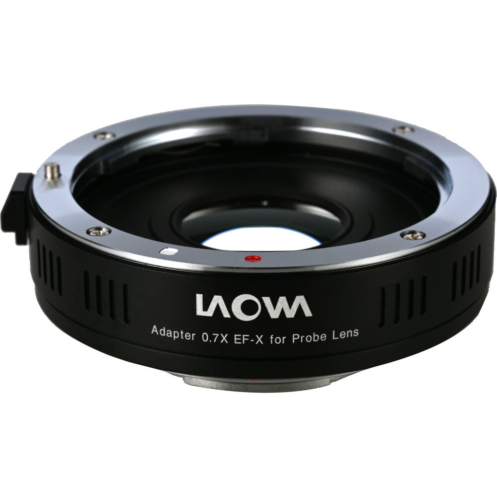Mount a Laowa EF-mount probe lens onto your v-mount Super 35/APS-C camera with this Laowa 0.7x Focal Reducer for Probe Lens from Venus Optics. This lens mount adapter widens the angle of view by 0.7x and adds one stop to the aperture. When used on a Super 35 camera, it lends the probe lens a 17mm focal length, and if used on a full-frame sensor, it is approximately the equivalent of 25mm. It is constructed with lightweight but durable aluminum and plastic materials.
