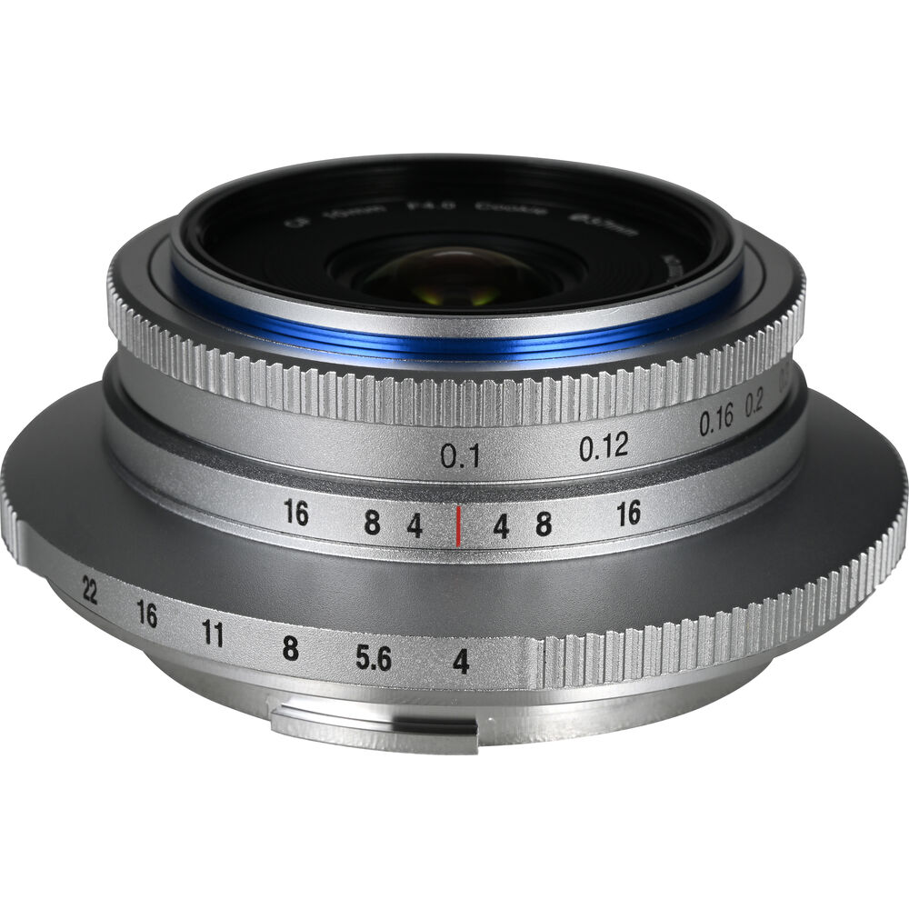Offered here in silver for Leica L-mount mirrorless cameras, this Venus Optics Laowa 10mm f/4 Cookie Lens is a pancake wide-angle prime designed for use with APS-C-size image sensors. Providing a 35mm-equivalent focal length of 15mm and a broad 109.3° angle of view, this lens is well-suited for architectural and landscape images and everyday photography. Additionally, the lens's 4" minimum focusing distance allows for wide-angle macro shots, while a five-blade aperture creates 10-point sun stars when shooting towards a bright light source. With its ultra-wide perspective and pocket-sized weight, this lens easily enables you to capture epic moments in everyday life and explore the beauty of your surroundings.