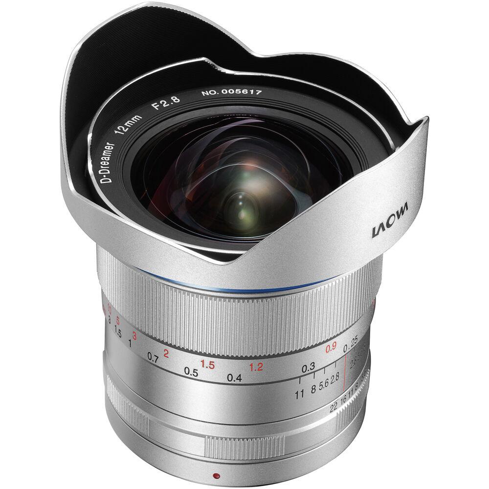 A truly wide-angle prime featuring a rectilinear optical design, the silver Nikon F-mount Laowa 12mm f/2.8 Zero-D from Venus Optics is specifically meant to limit distortion for clear and accurate portrayals of landscapes and architectural subjects. The optical construction also incorporates a pair of aspherical elements and three extra-low dispersion elements to control both spherical and chromatic aberrations for improved sharpness and reduced color fringing. A Frog Eye Coating has been applied, too, to repel dust and moisture from the front element of the lens to benefit working in trying environmental conditions. Benefitting the optical attributes, this lens also features a precise manual focus design along with a floating optical system to maintain accurate rendering throughout the focus range, from 7.09" to infinity. Additionally, a petal-shaped lens hood is also incorporated into the lens' design to reduce flare and ghosting when working in strong lighting conditions.