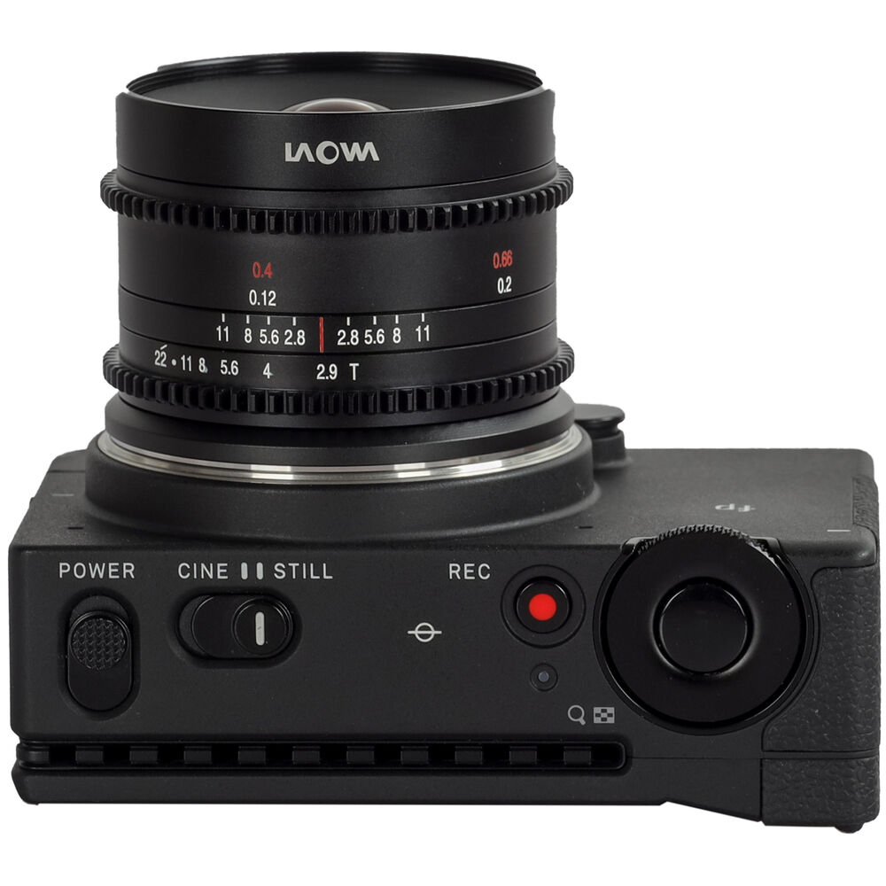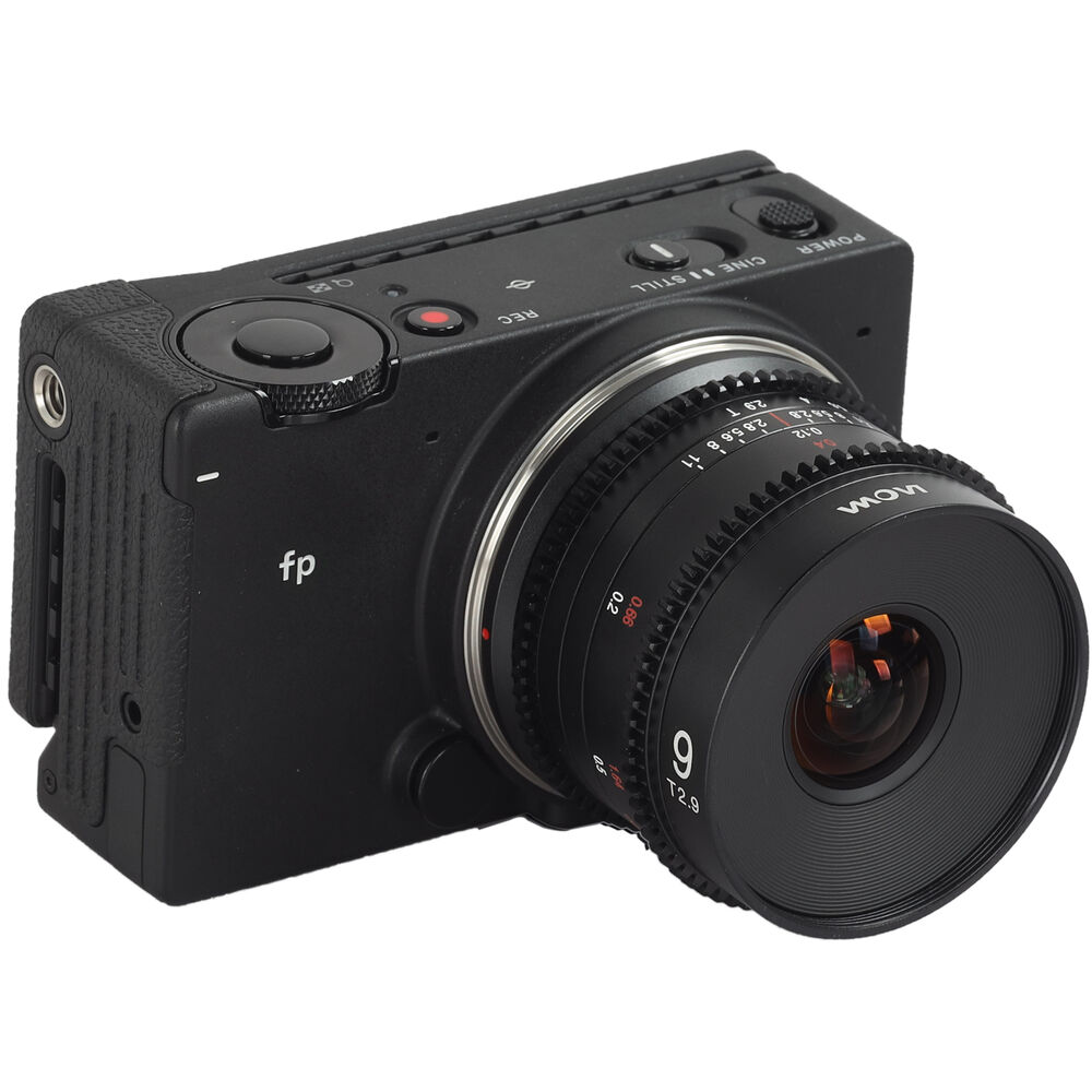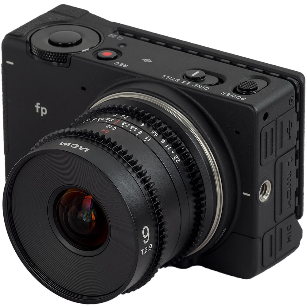 This Leica L-mount Laowa 9mm T2.9 Zero-D Cine Lens from Venus Optics features markings in both feet and meters, covers up to Super35 sensors, and provides a wide 113° angle of view when using an APS-C sensor. It is well suited for outdoor and landscape shots locations such as aerial drone, underwater, indie, and vlogging productions, and it is optimized for digital cinematography with cinema cameras. It is lightweight and compact, suitable for handheld, gimbal, and tripod-mounted shooting. This lens comes in a black color exterior casing.