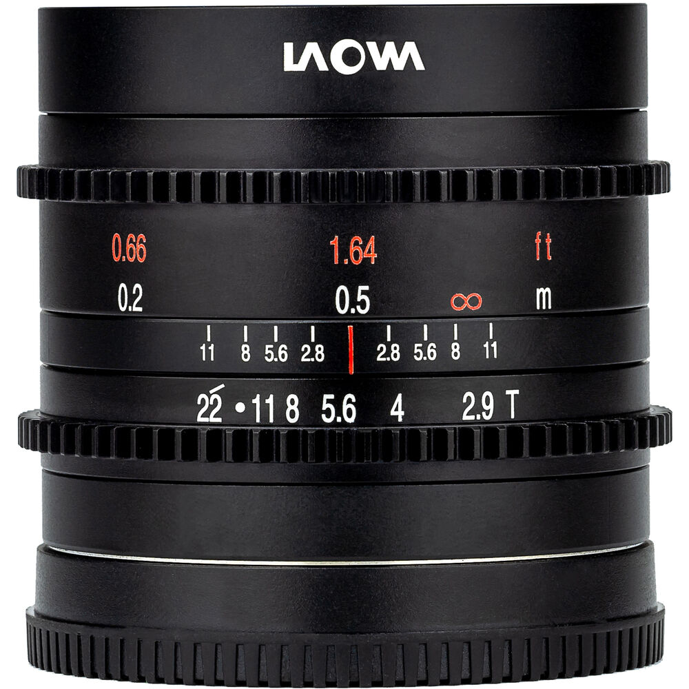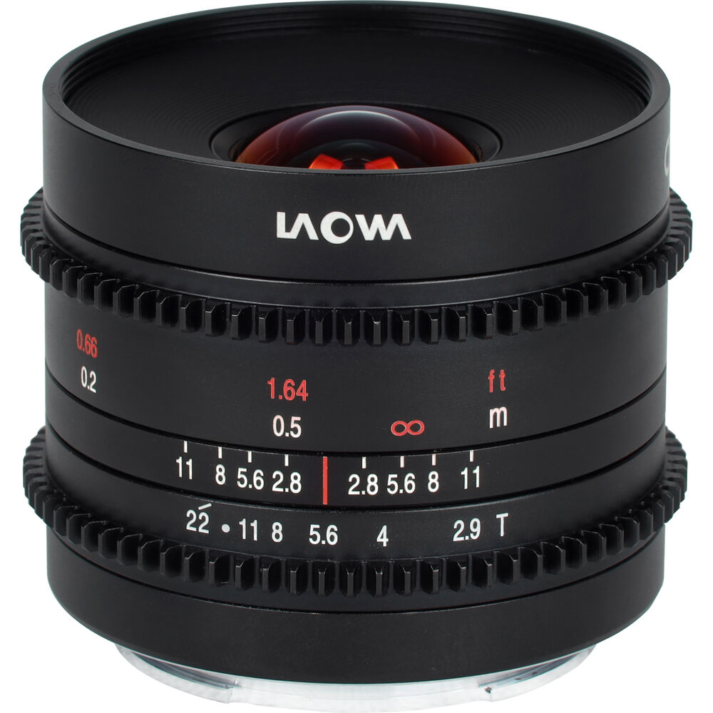 This MFT mount Laowa 9mm T2.9 Zero-D Cine Lens from Venus Optics is marked in feet and provides a wide 100° angle of view. It is well suited for outdoor and landscape shots and in tight interior locations, and it is optimized for digital cinematography. It is lightweight and compact so it is suitable for both handheld shooting and gimbal use, as well as tripod-mounted shooting.