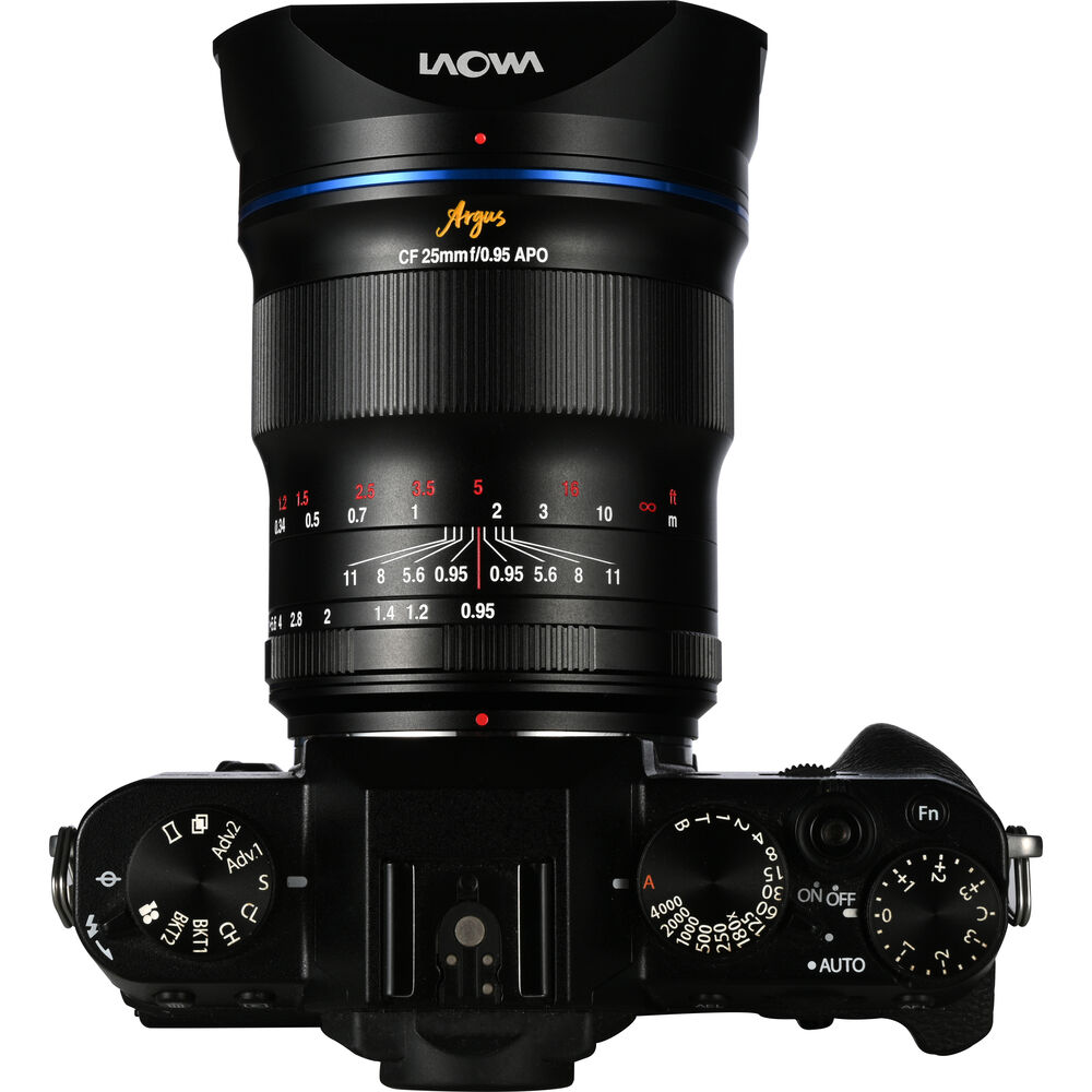 An ultra-fast prime for FUJIFILM X-mount cameras, the Laowa Argus 25mm f/0.95 CF APO Lens from Venus Optics provides outstanding sharpness and color fidelity in an easy-to-use, manual focus design. An excellent choice for street scenes, portraiture, and more, this lens is built for working in low-light conditions and for isolating subject matter while using selective focus techniques. The lens's manual focus design permits working with subjects as close as 13" away, and the lens sports a nine-blade diaphragm that provides a pleasing and unique bokeh quality.