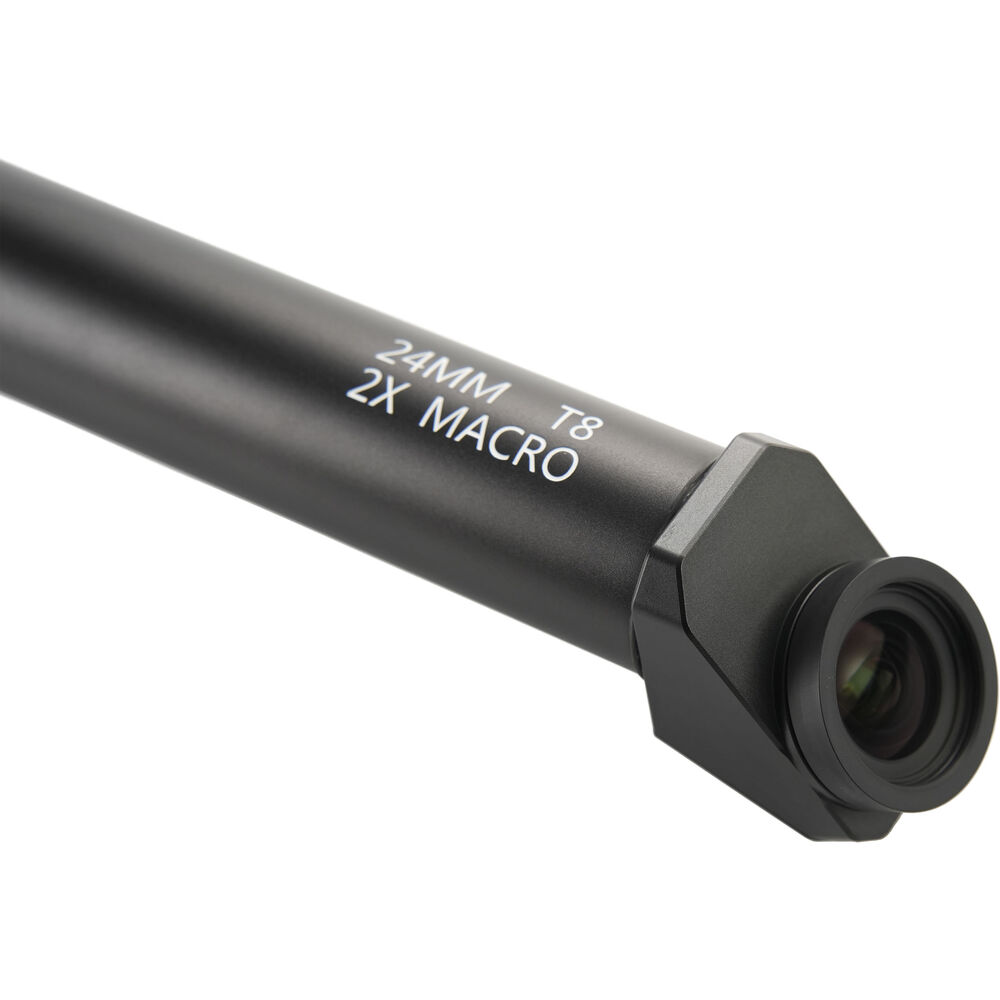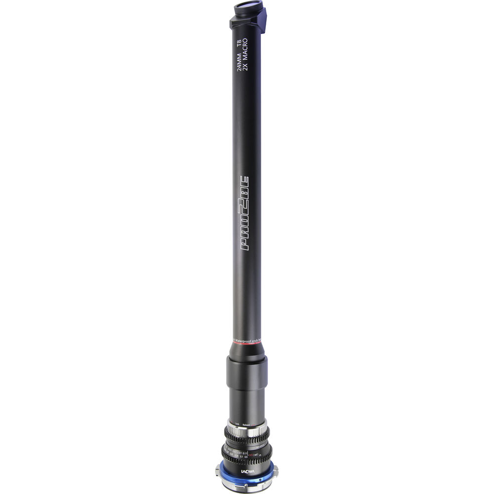 Capture unique close-up views with your PL-mount cine camera and the LAOWA 24mm T8 Full Frame 2x Pro2be Lens from Venus Optics. This 35° view lens is one in a series that also includes direct-view and 90° periscope versions. It covers up to full-frame camera sensors, is waterproof down to 14.4", focuses to just 0.2", and features a relatively fast T8 maximum aperture, a 2x magnification ratio, and 360° rotation.