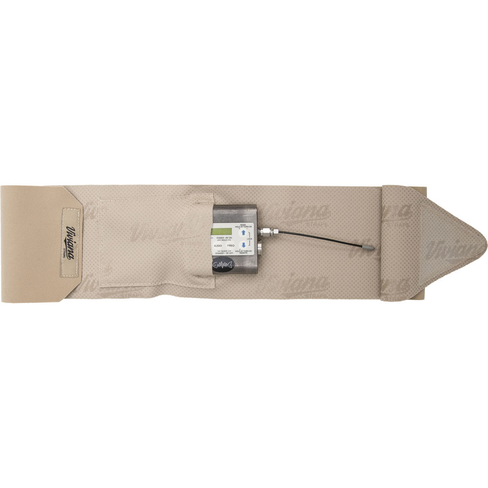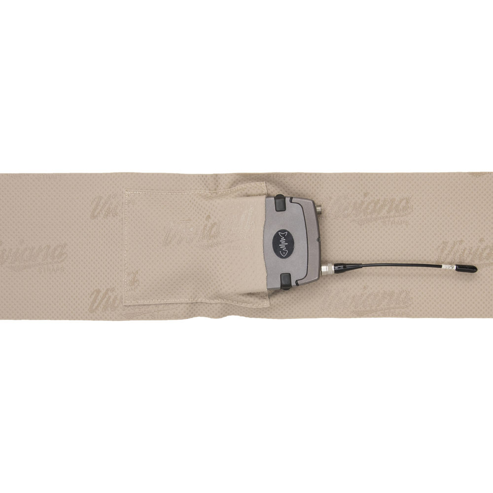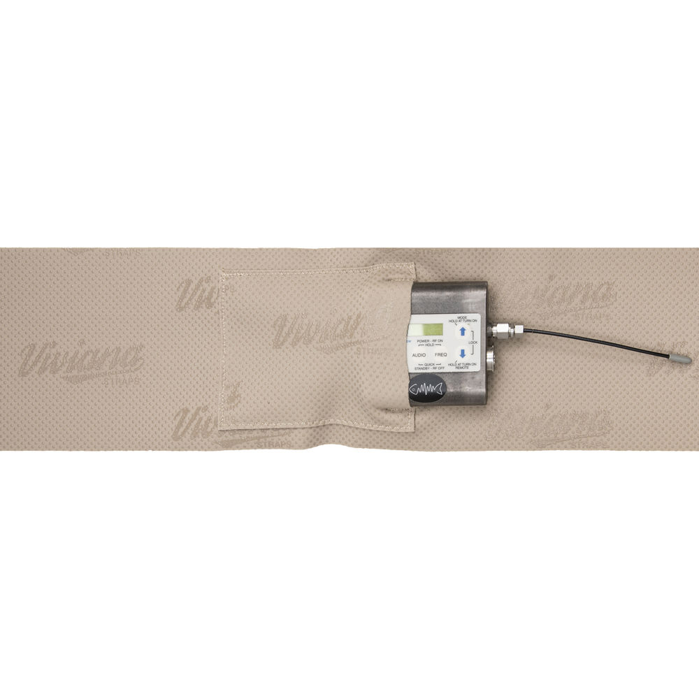 The beige Viviana Extreme Thigh Strap with Side-Exit Pouch is used to hold a wireless transmitter on the thigh of your talent. It features an horizontal, side-exit pouch useful for hiding transmitters under mini skirts.