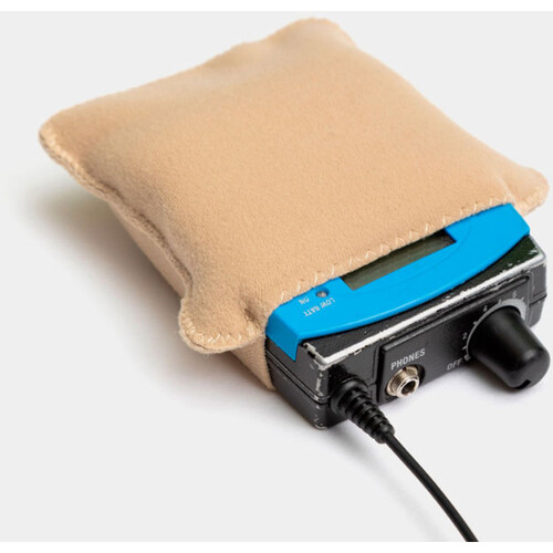 This brown, medium Belt Puffy Pouch from Viviana protects your compatible transmitter, while at the same time, the soft and comfortable pouch is gentle on your talent. You can easily mount medium-sized transmitters to your on-screen talent's belt or bra in either vertical or horizontal position, making it easier to hide the transmitter without causing your talent discomfort.
