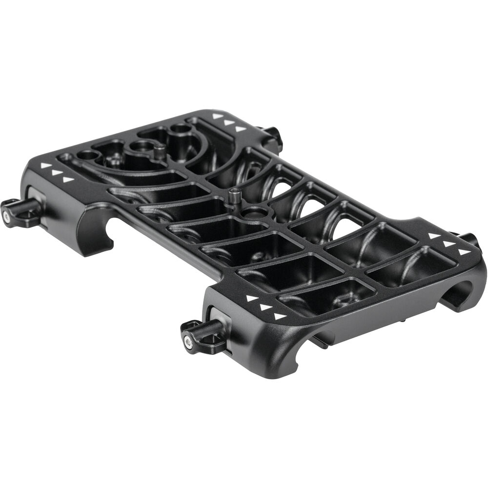 Add quick-release mounting functionality to your Sony VENICE or VENICE 2 camera using this Wooden Camera Arca-Type Baseplate. The baseplate maintains a low center of gravity thanks to its low-profile design. Lens-centered 15mm rod clamps on the front and back of the plate allow for integration of rod-based shoulder mounts, battery plates, or follow focus systems. A safety rail system with locating pins offer additional security and intuitive positioning of your camera onto your compatible mount of choice. Access holes to the sensor block screws allow you to convert to a Rialto 2 setup without removing the baseplate from your camera.