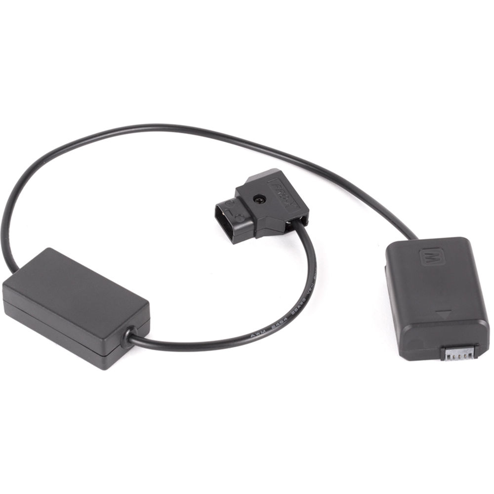 The D-Tap to Sony A7 Series Power Cable from Wooden Camera is a dummy battery which allows you to power a Sony A7 series camera that requires an NP-FW50 battery using a V-Mount or Gold Mount battery with a D-Tap plug. The voltage converter box mid cable adapts 14.8V to standard 7.4V required by the camera.