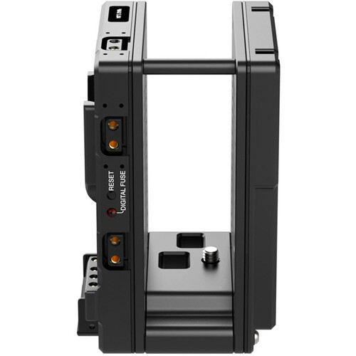 Three D-Tap ports on the battery side can power your transmitter or other accessories at 12-16V and includes a digital fuse with reset button. A 1/4"-20 screw inside the cradle secures the transmitter inside to deliver 4K 12G-SDI video to your Bolt LT receiver unit. The cradle helps keep your camera's gear configuration compact and has two openings at the bottom, one for USB access and the other for ventilation.