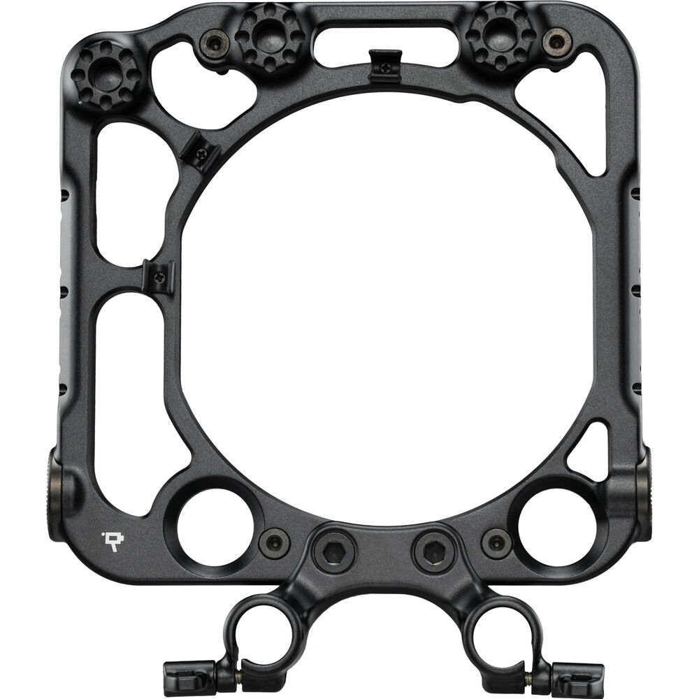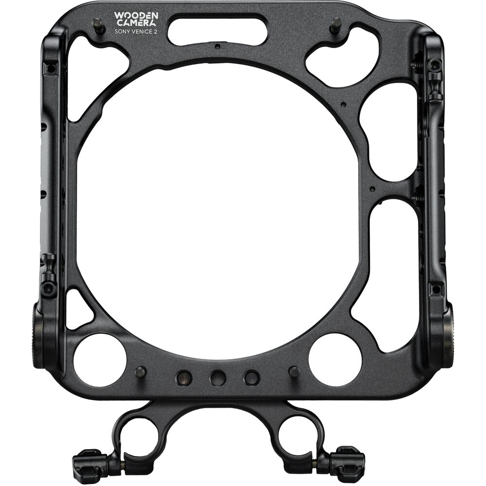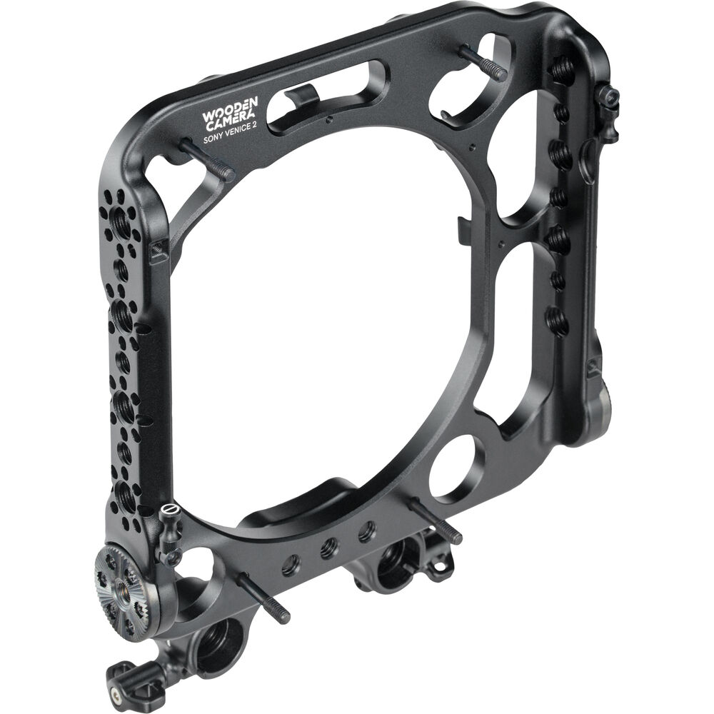 This Faceplate Cage from Wooden Camera attaches to your select Sony VENICE Series camera with its existing mounting points to provide places to attach various accessories. Multiple 1/4"-20 and 3/8"-16 threads with locating pins throughout the cage can attach articulating arms or wireless transmitters to the cage. Two rosette mounts on the sides of the Faceplate can accommodate handles for handheld or shoulder-mounted shooting.