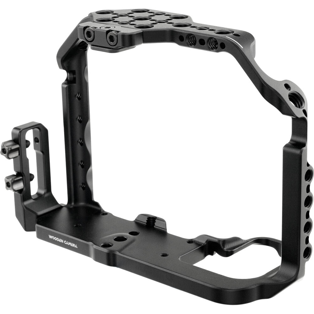 Outfit your Panasonic GH6 camera with this Full Camera Cage from Wooden Camera to protect the camera body while expanding its mounting capabilities. Its wraparound custom-fit design offers increased stability to your GH6 without blocking ports and controls, as well as multiple 1/4"-20 and 3/8"-16 threads with anti-twist divots. These allow you to attach an articulating arm, light, mic, or monitor to your handheld configuration.