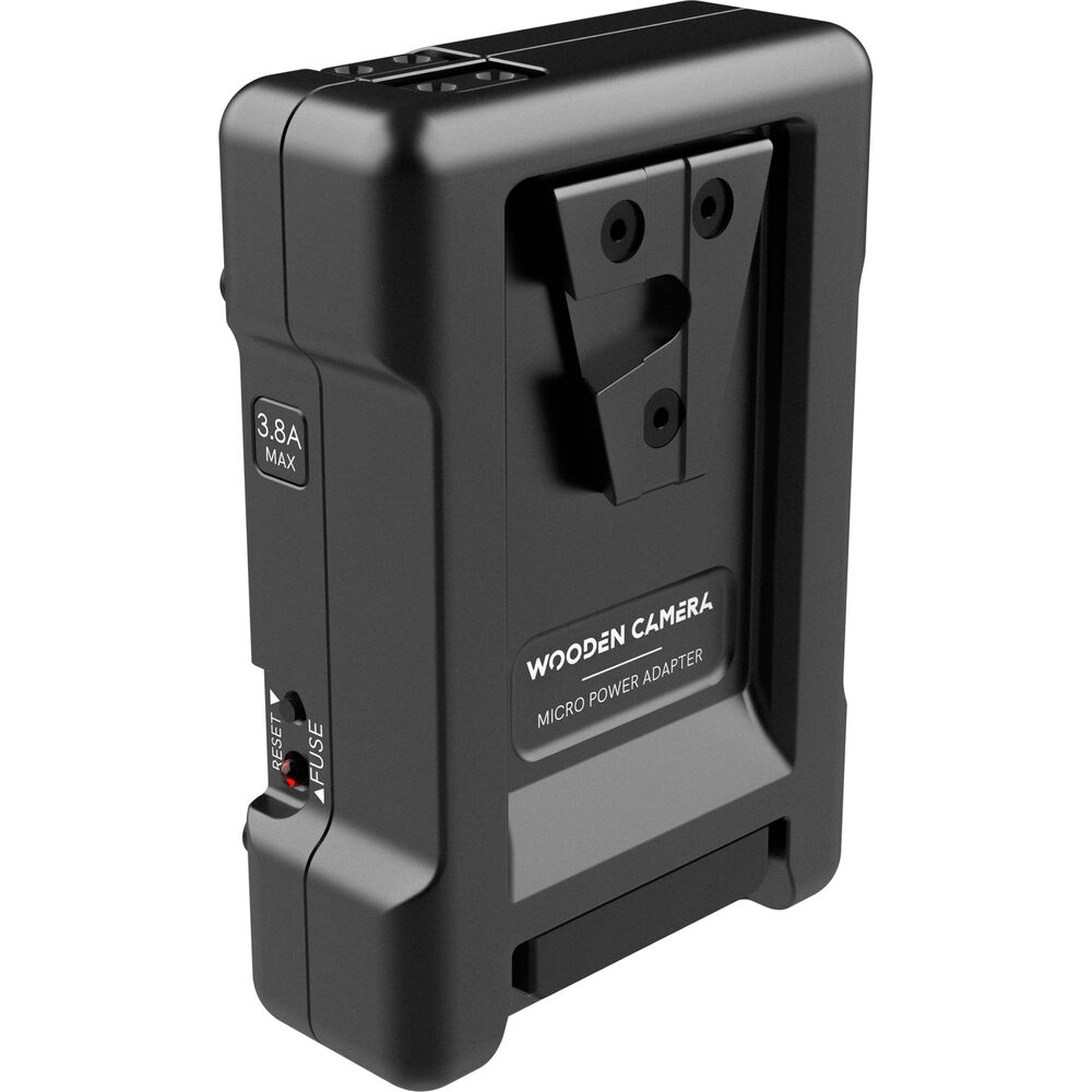 Adapt your RED V-RAPTOR camera for use with full-sized V-mount batteries with this Micro Battery Plate Adapter from Wooden Camera. Constructed from lightweight yet durable aluminum, this compact adapter features two D-Tap ports for powering accessories and a 3.8A E-fuse that can be easily reset. If the load is exceeded, this adapter will disable the accessory outputs, enabling your camera to continue to run.