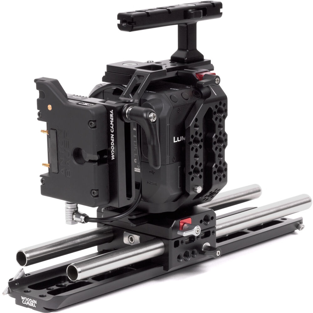 Add a high-capacity battery plate to power your Panasonic BGH1 rig with this compact Micro Battery Slide from Wooden Camera. It supports one Gold mount battery while leaving access to the camera's standard battery compartment, and it powers the camera using the included 3-pin LEMO-type connector cable. With the camera's AG-VBR59 battery in place, hot swapping is supported.