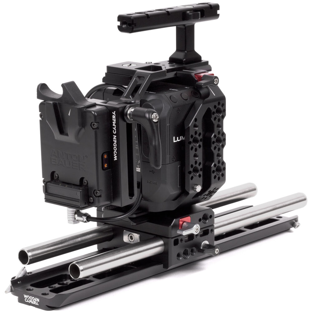 Add a high-capacity battery plate to power your Panasonic BGH1 rig with this compact Micro Battery Slide from Wooden Camera. It supports one V-mount battery while leaving access to the camera's standard battery compartment, and it powers the camera using the included 3-pin LEMO-type connector cable. With the camera's AG-VBR59 battery in place, hot swapping is supported.