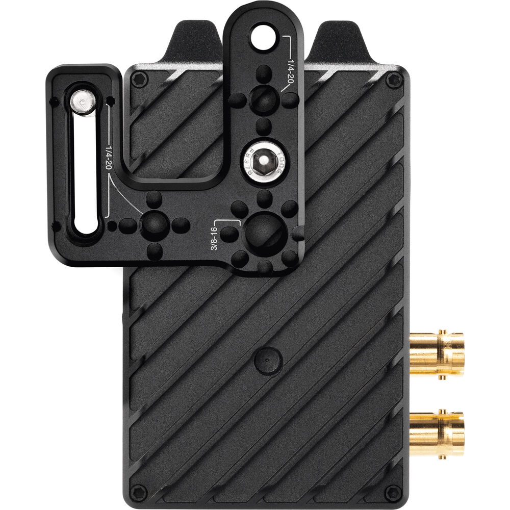 Use this Wooden Camera Offset Mounting Bracket to position your Teradek Bolt 4K LT TX in up to six different configurations on your camera rig for optimized positioning. Two captive 1/4"-20 screws attach the bracket to your camera cage. Two 1/4"-20 threads and one 3/8"-16 thread, all with locating points, can accept additional accessories like articulating arms.