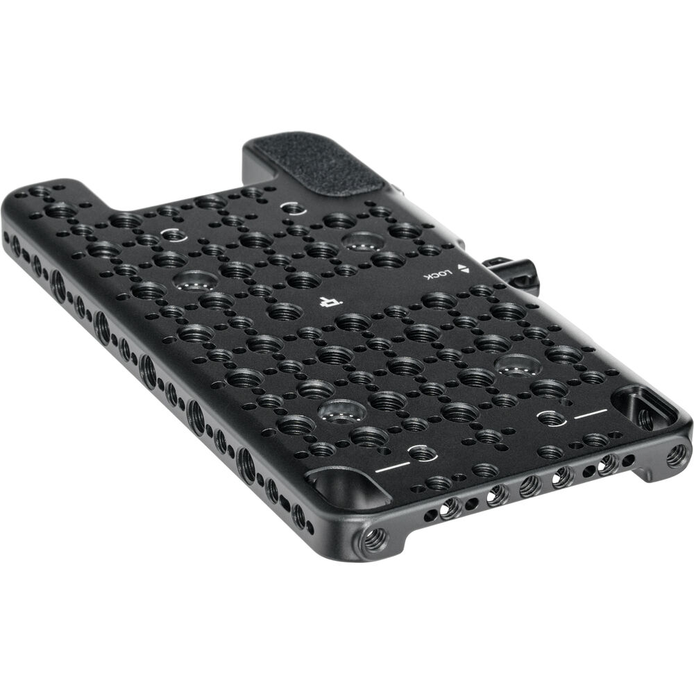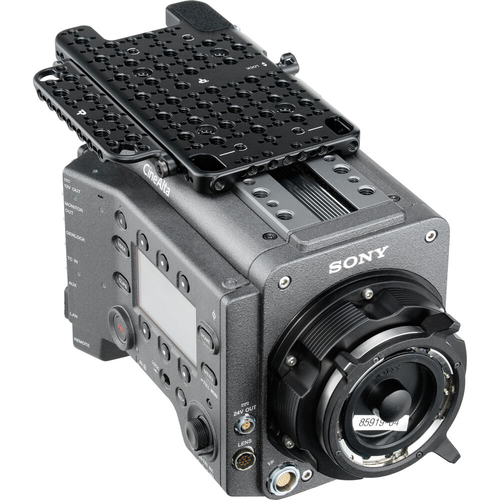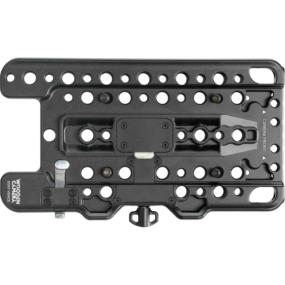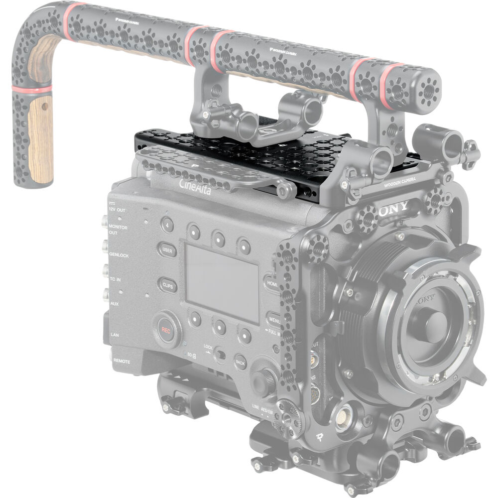 This Wooden Camera Quick Release Top Plate is designed to slide onto your Sony VENICE/VENICE 2's top dovetail mount for seamless, tool-free attachment to expand the mounting points on your rig. The cheese-style plate offers multiple mounting threads to attach various accessories like wireless transmitters, microphone systems, and the separately available 15mm dual rod clamp to your rig. It even has an integrated spot for hook-and-loop accessories. Four 1/4"-20 mounting screws lock the plate into place when needed. Its lightweight design ensures no extra bulk is added to your rig configuration.
