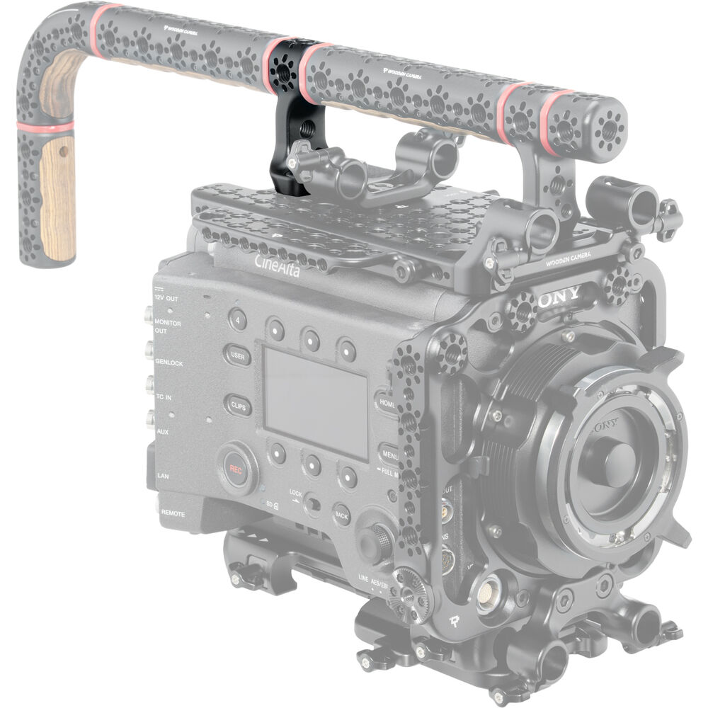Create a handle that best suits your Sony VENICE series camera rig using this Rear Ultra Handle Connector from Wooden Camera thanks to its modular design. Attach this connector to the rear of your Sony VENICE top plate using the two mounting screws at the base. A 3/8"-16 screw and multiple anti-twist 3/8"-16 threads can attach it to separately available extension pieces. Two 1/4"-20 threads allow you to integrate additional accessories of your choice.