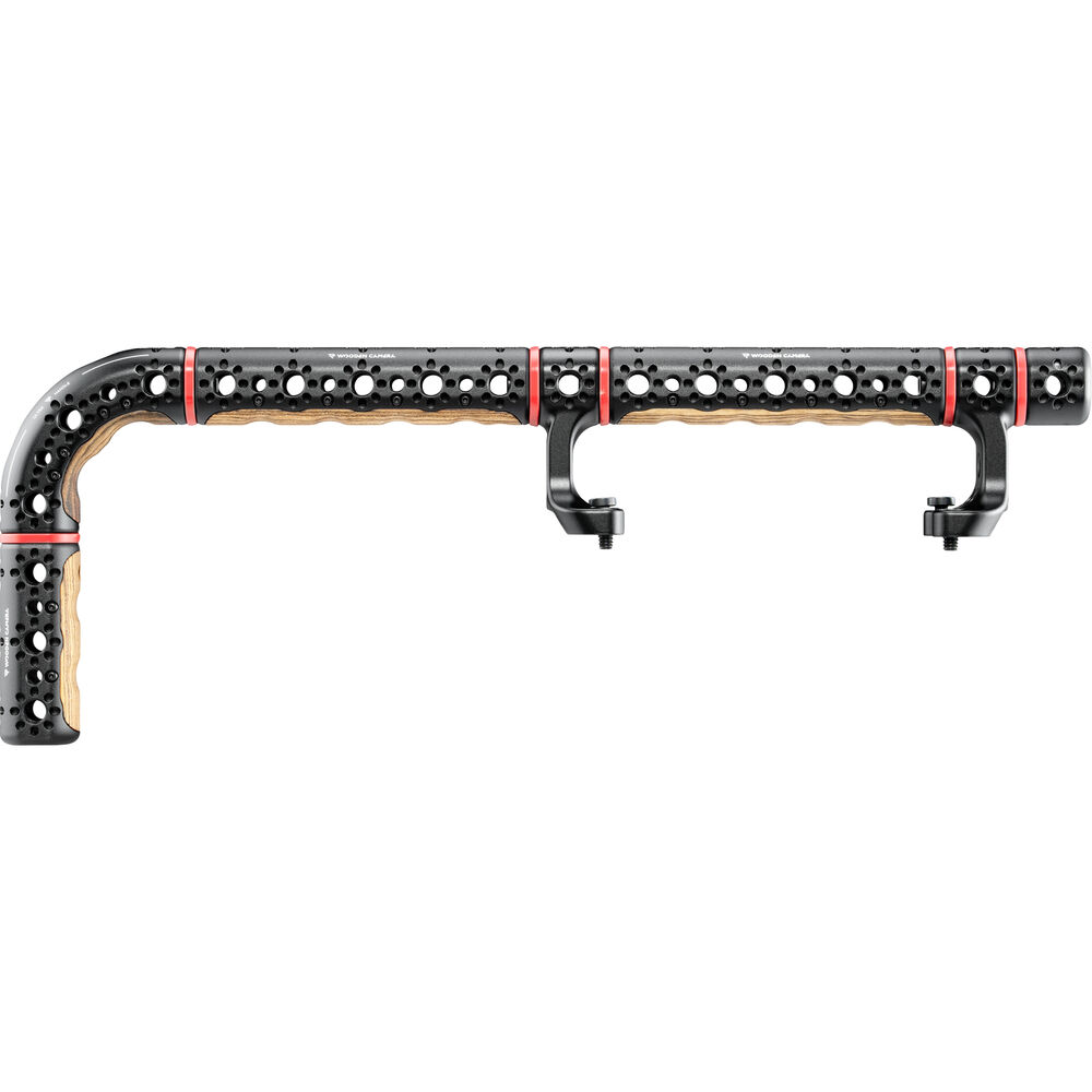 Create a handle that best suits your Sony VENICE series camera rig using this Ultra Handle Right-Angle Extension from Wooden Camera thanks to its modular design. A 3/8"-16 screw on one end of the extension can attach it to separately available connectors or other extension pieces. Multiple anti-twist 3/8"-16 and 1/4"-20 threads allow you to integrate articulating arms and on-camera monitors of your choice. A Bocote hardwood insert at the bottom of the extension offers an ergonomic handgrip. The pass-through design of the threads allow you to tighten the screw with an Allen key.
