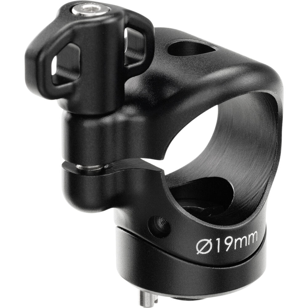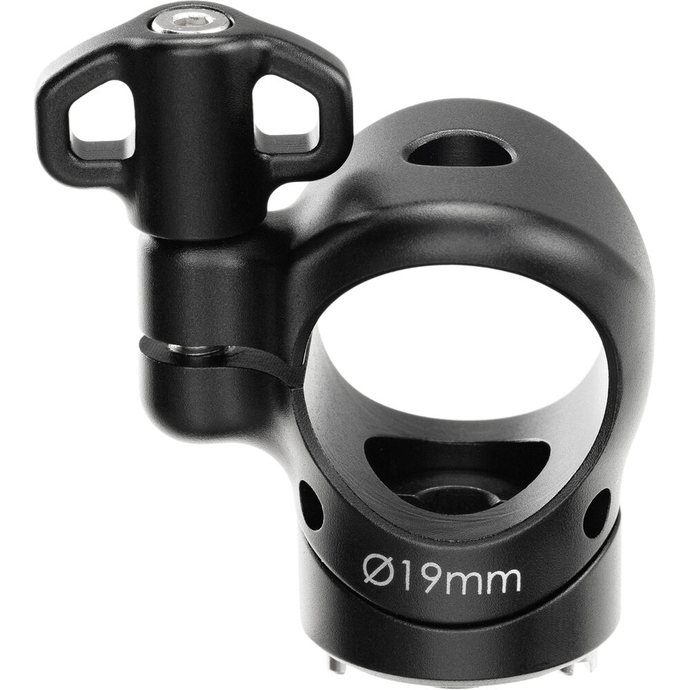 Mount a 19mm rod-mounted accessory onto your rig with this Universal 19mm Rod Clamp from Wooden Camera. This compact clamp features a single 19mm rod port and on the other side is a 3/8"-16 mounting screw with removable anti-twist locating pins. The rod clamp is secured using a large locking thumbscrew. It can mount onto your camera cage or rig to mount a follow focus motor, flag, or other accessory.