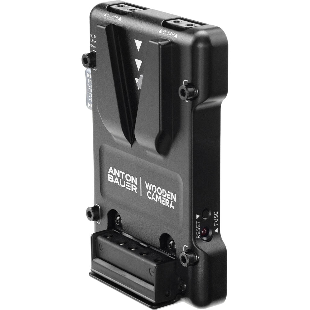 This compact Universal Micro Battery Plate from Wooden Camera supports both micro and full-size V-mount batteries. The durable aluminum alloy plate features two D-Tap output ports and a resettable digital fuse. Mount this plate on your rig using its captive M3 socket-head screws or a separately available cheese-style Accessory Plate.