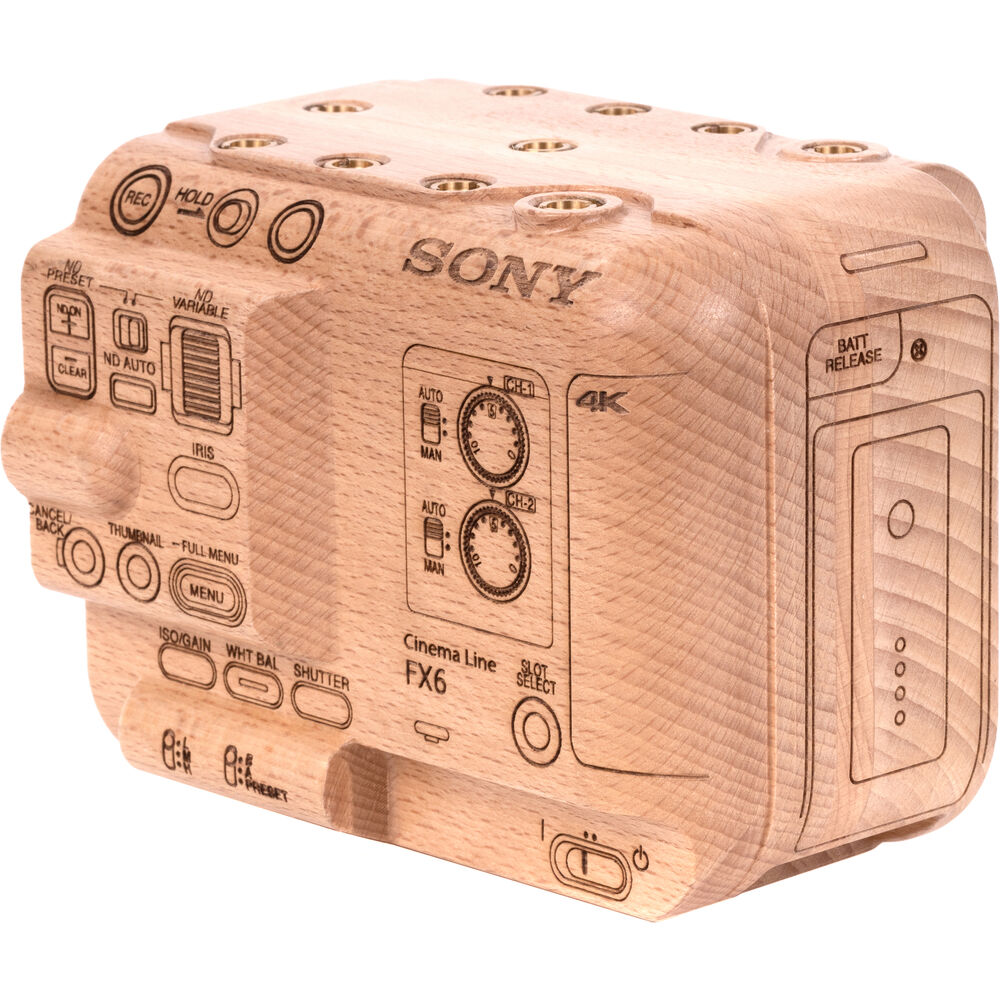 Add a replica of the Sony FX6 camera to your accessory testing area or floor display with this Wood Model from Wooden Camera. This model is a detailed wooden replica of the FX6 camera and even features threaded accessory mounting holes on top, back, and bottom.